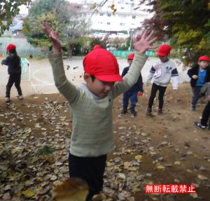 たくさん集めた後は上に投げて、落ち葉プールを楽しみました😊