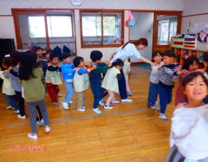 こちらは年長のお部屋で「仲良し椅子とりゲーム」です!