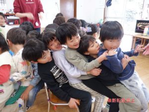 お友だちの上に、優しくちょこんと座っても良い。というルールです。
