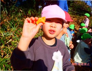 年長では森探検に行き、今しか味わえない、今しか見られない景色を見て回りました。
