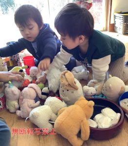 今週は年少さんもついに!お店屋さんで店員さんに挑戦しました😊 年長・年中のお店屋さんでのお買い物を通して、次第に店員さ