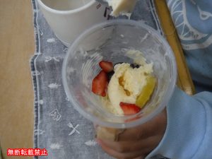 アイスの上に果物を乗せ、