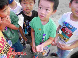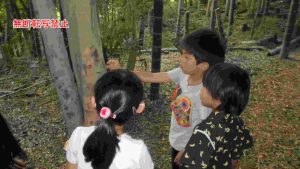 みんなで一列になり暗い森を懐中電灯を持って探検に行きます!!