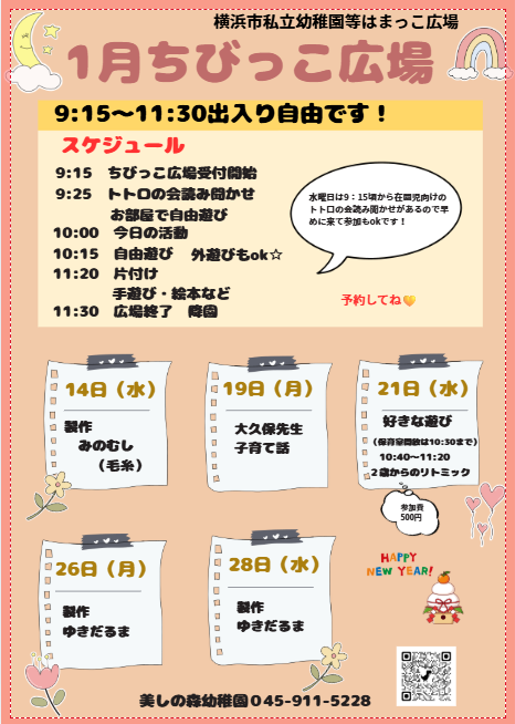 《無料》0歳からのちびっこ広場(1月スケジュール)