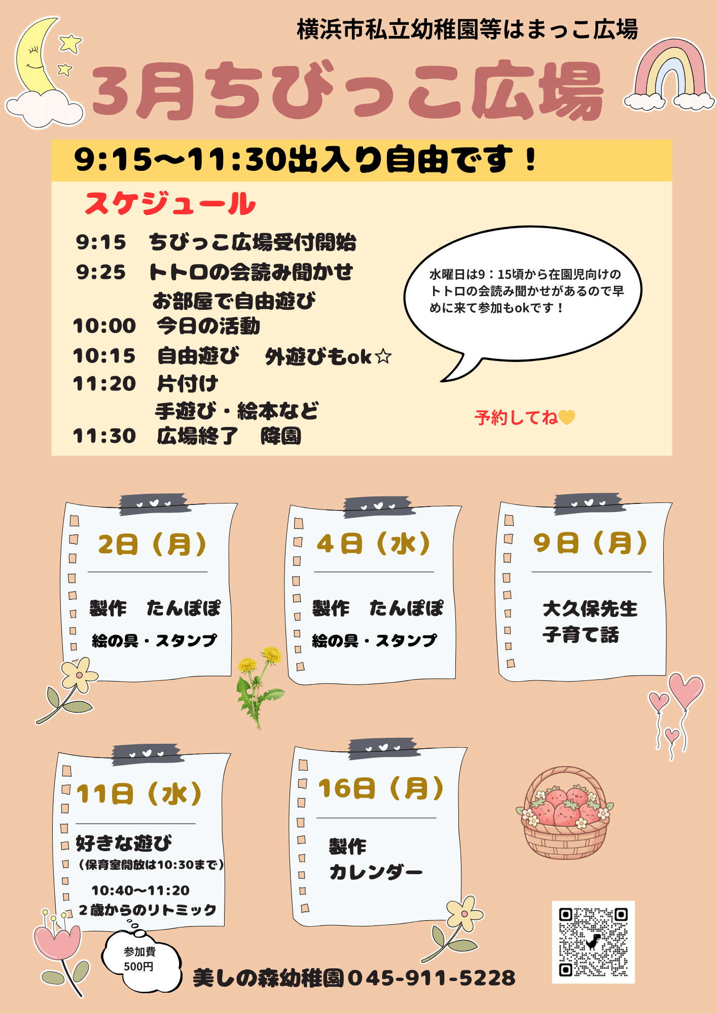 【無料】親子で楽しめる!!3月のちびっこ広場のお知らせ
